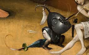 Nous l’admirons d’abord de loin, une ceinture de visiteurs nous en interdisant l’accès. Nous patientons pour nous en approcher car ce sont les détails de ses cinq panneaux qui font sa particularité : une succession de miniatures morbides, de tortures et de meurtres, d’actes scatologiques, commis par des êtres monstrueux et hybrides. Tous les panneaux de ce fabuleux triptyque semblent droit sortis d’une imagination fiévreuse en pleine effervescence. S’il vivait aujourd’hui, on dirait certainement de Jérôme Bosch qu’il présente tous les troubles psychiatriques d’un esprit dérangé conduisant à un nécessaire enfermement.