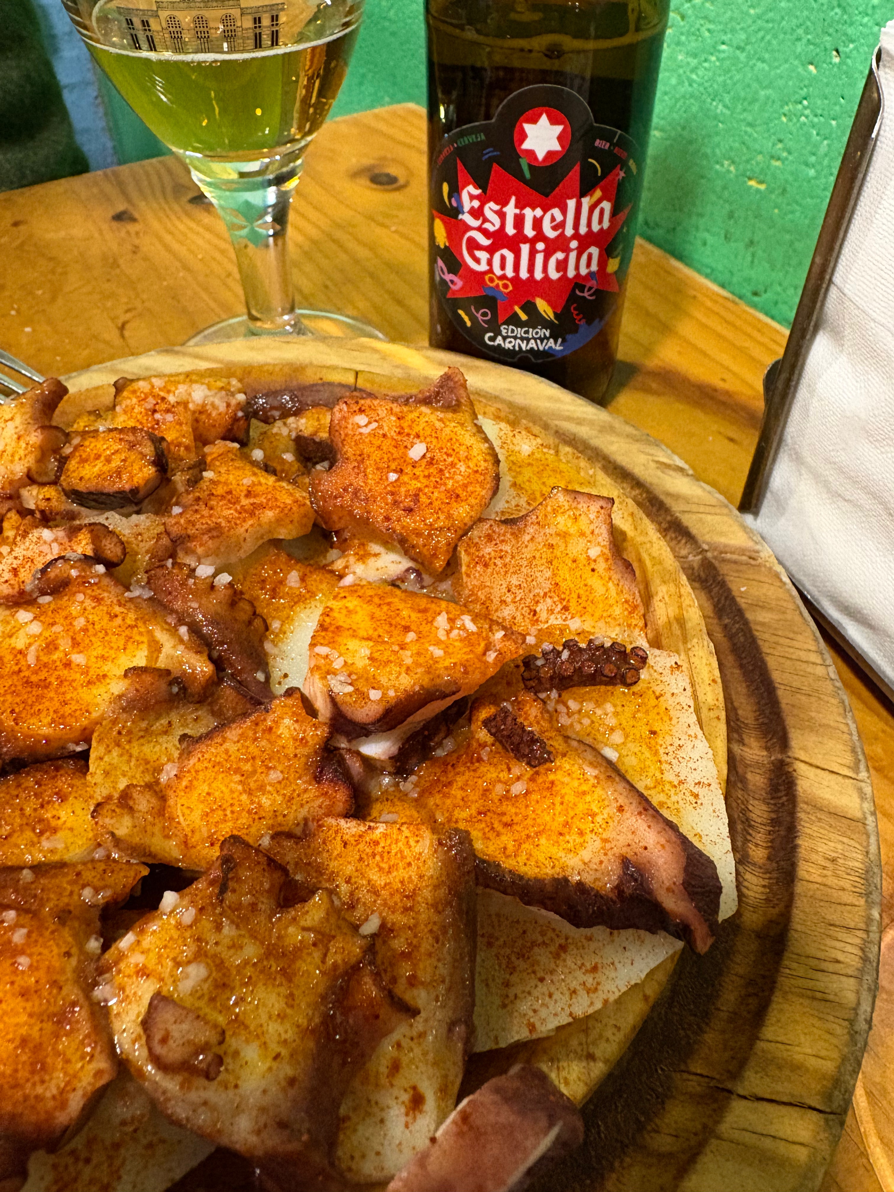Nous quittons le musée vers quinze heures. Direction les tapas galiciennes, les pimientos padron, le pulpo a la plancha, les croquetas al jambon et les tartinias de la Taberna Maceira du 66 de la calle de las Huertas pour un intermède gustatif.