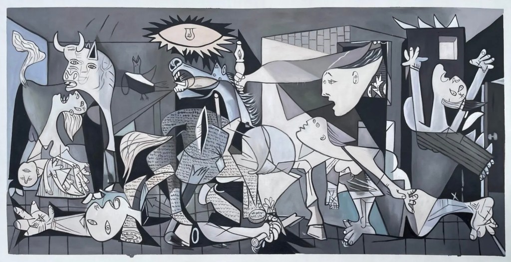 Il a pourtant longtemps hésité à accepter la commande du chef du gouvernement Francisco Largo Caballero destinée au pavillon espagnol de l’Exposition universelle de Paris de 1937. Puis il s’est longuement interrogé sur le sujet à traiter. Mais les évènements tragiques du 26 avril ont vite balayé ses incertitudes. Ce sera un manifeste politique, une dénonciation des totalitarismes. Une représentation expressionniste des horreurs et de la sauvagerie du bombardement de la ville basque de Guernica.